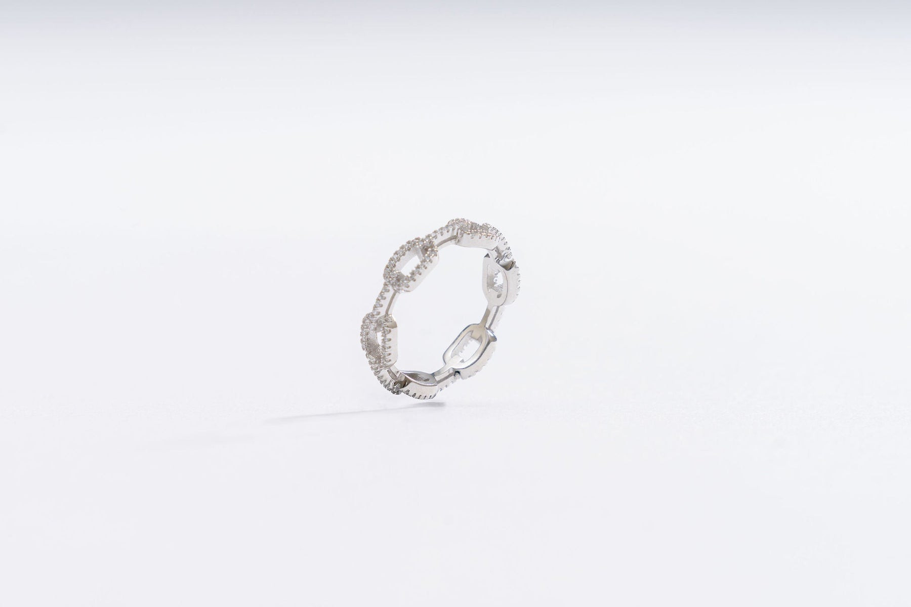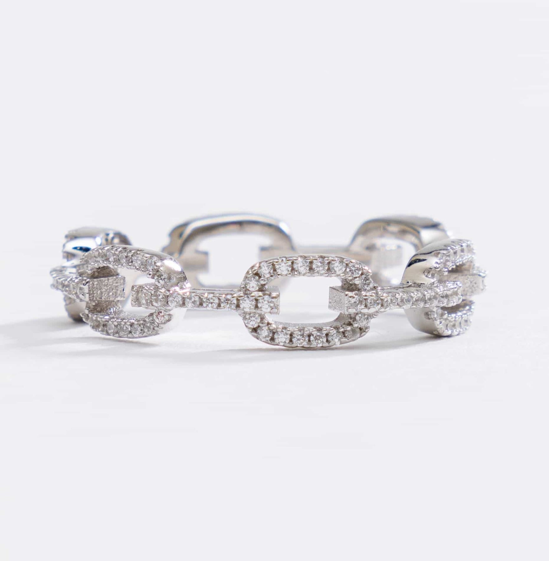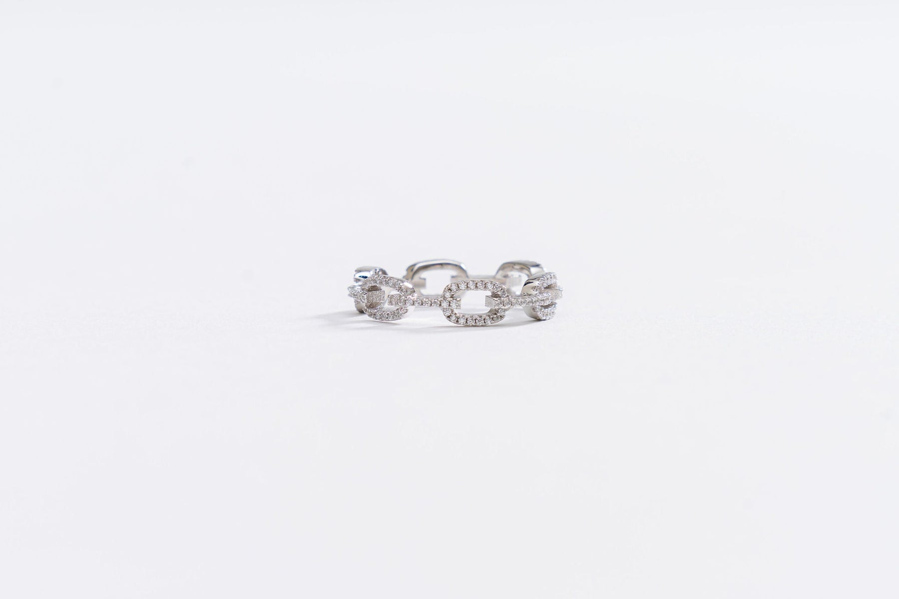 Introducing our mesmerizing Zoe Ring, a true embodiment of delicate beauty and understated elegance. Drafted with utmost precision, this unique piece features a silver cubic zirconia set on a 925 sterling silver band designed in the shape of a chain. Its alluring design is truly one-of-a-kind, offering a captivating allure that sets it apart from anything you've seen before. With its delicate appearance and undeniable charm, this Chain Ring is the epitome of timeless sophistication and a perfect accessory to enhance your personal style.