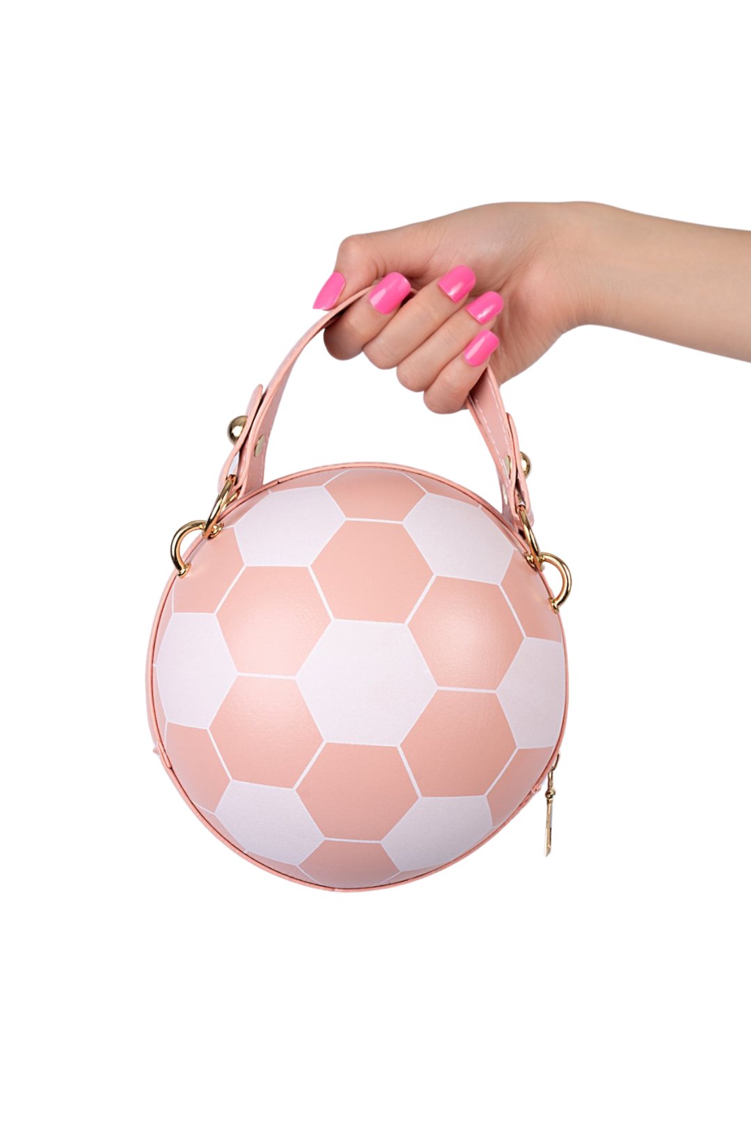 Hey, Sporty Spice! Meet our Goal Getter Leather Handbag, the ultimate accessory for our sporty girls looking to bring the spirit of the field to their everyday style. This unique bag combines the love for sports with a touch of femininity, featuring a pink and white design that mimics the iconic soccer ball pattern.