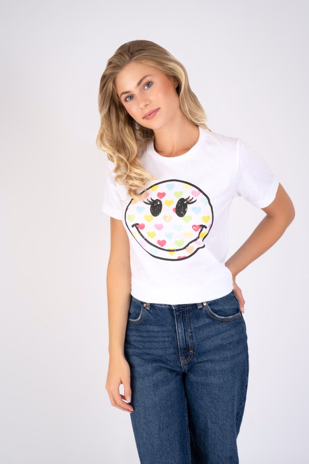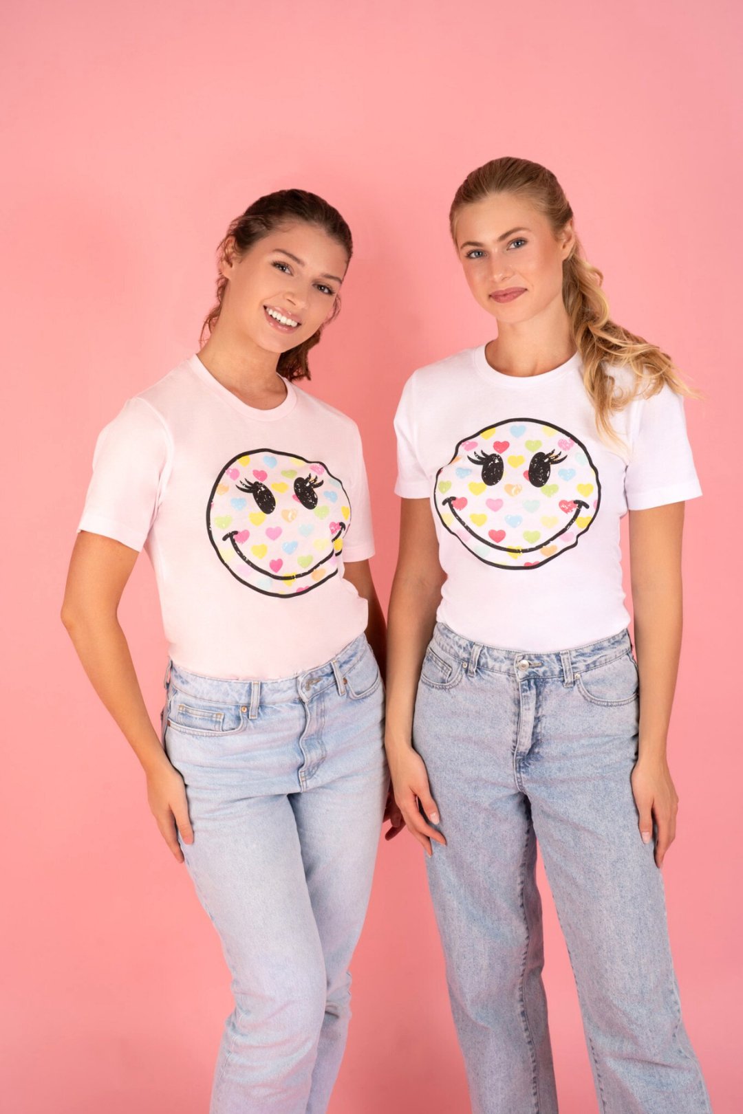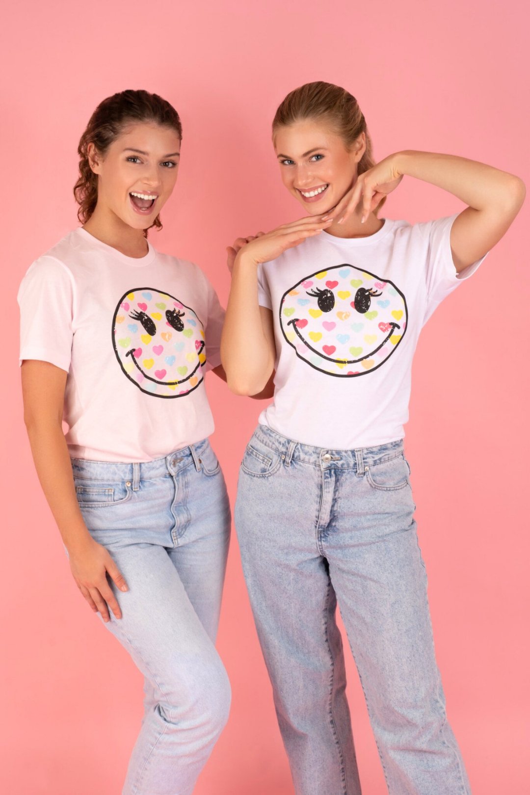 Introducing our Heart Smiley Tee – a delightful expression of love and cuteness. Available in two charming colors, white and pink, this T-shirt is the perfect addition to your wardrobe. The heart smiley face design adds an endearing touch, radiating warmth and positivity. Crafted from soft and breathable 100% heirloom fabric, it ensures both style and comfort. Whether you choose the pristine white or the pretty pink, this T-shirt is versatile for various occasions and perfect for those who love to embrace a touch of femininity. Elevate your style with our Girly T-shirt, and wear your heart on your sleeve – quite literally!