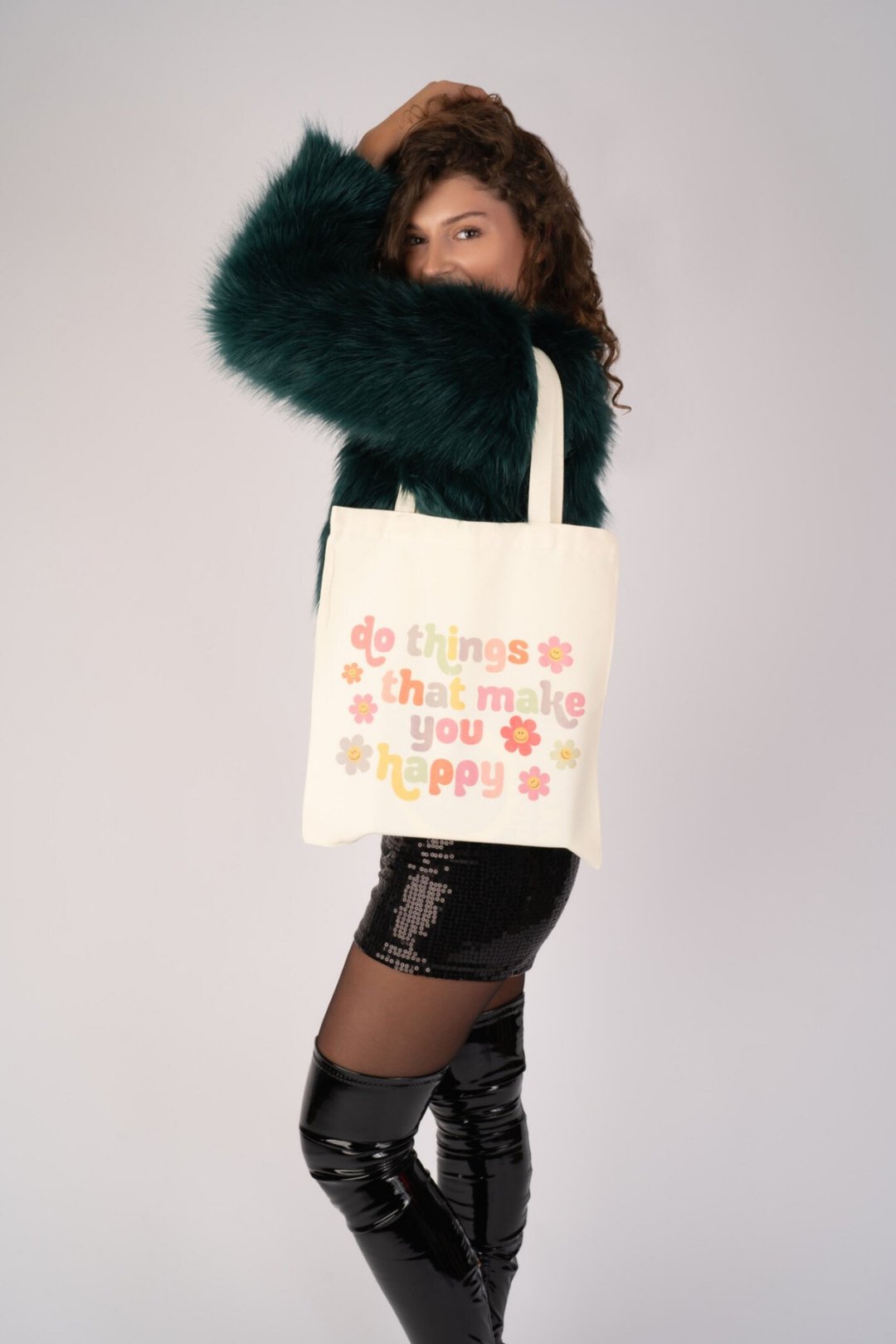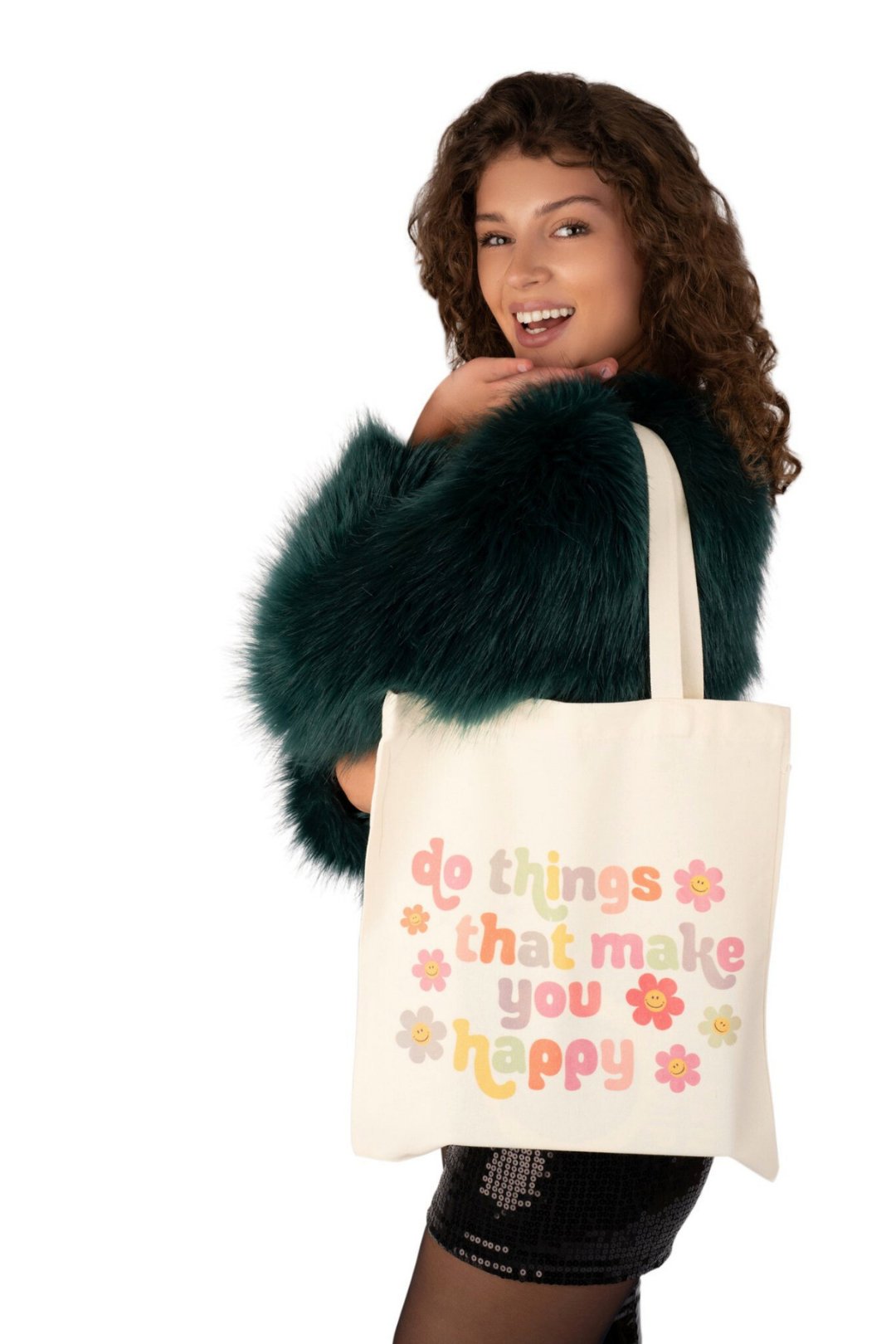 Introducing the Joyful Journeys Tote Bag, your go-to companion for spreading happiness and positivity wherever you go. Crafted from high-quality canvas, this tote is durable and the perfect companion for school, the grocery store, or your go-to workout class. This bag fulfills more than its common purpose—it reminds you to embrace happiness and carry it with you on all your adventures.