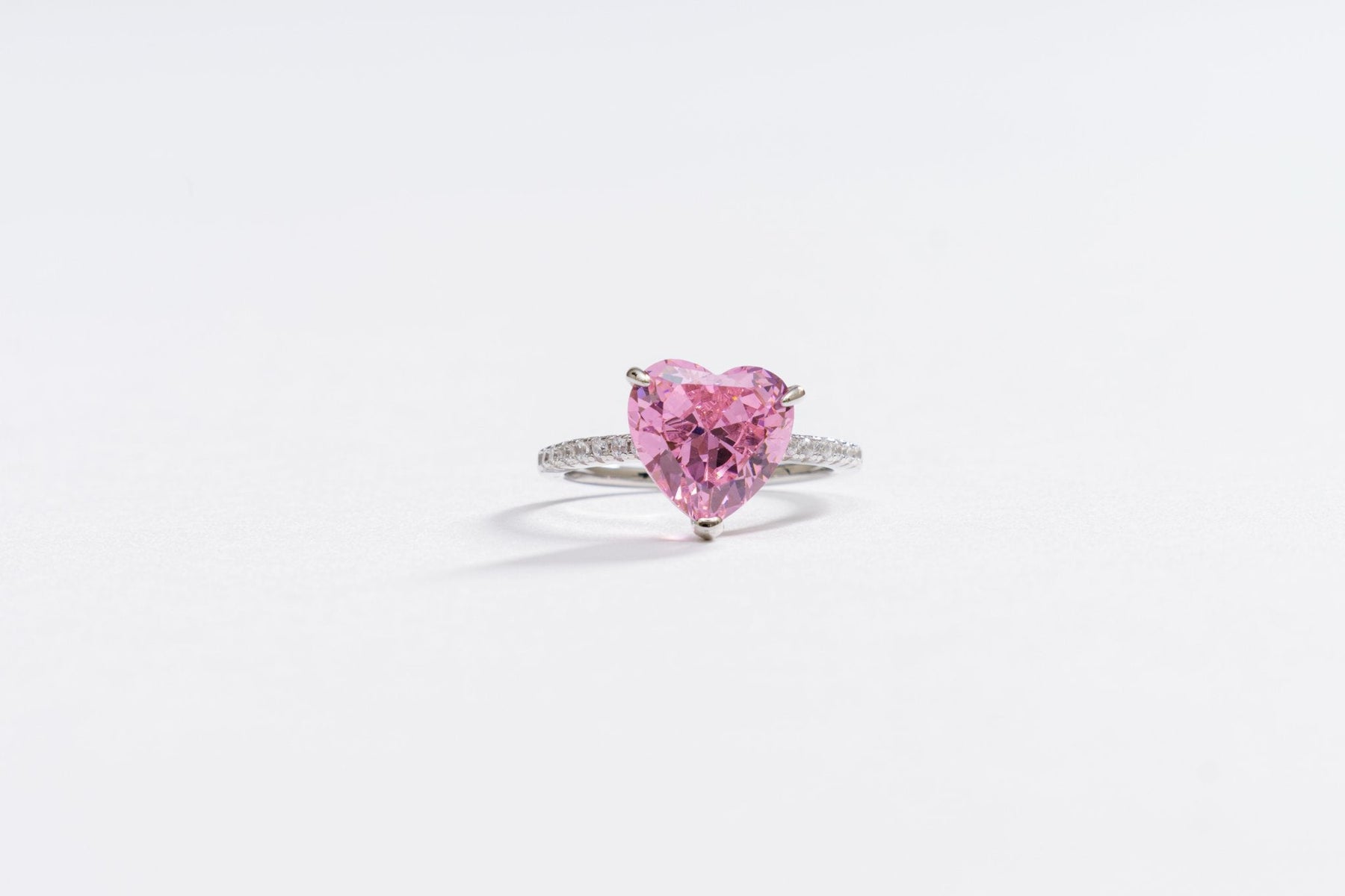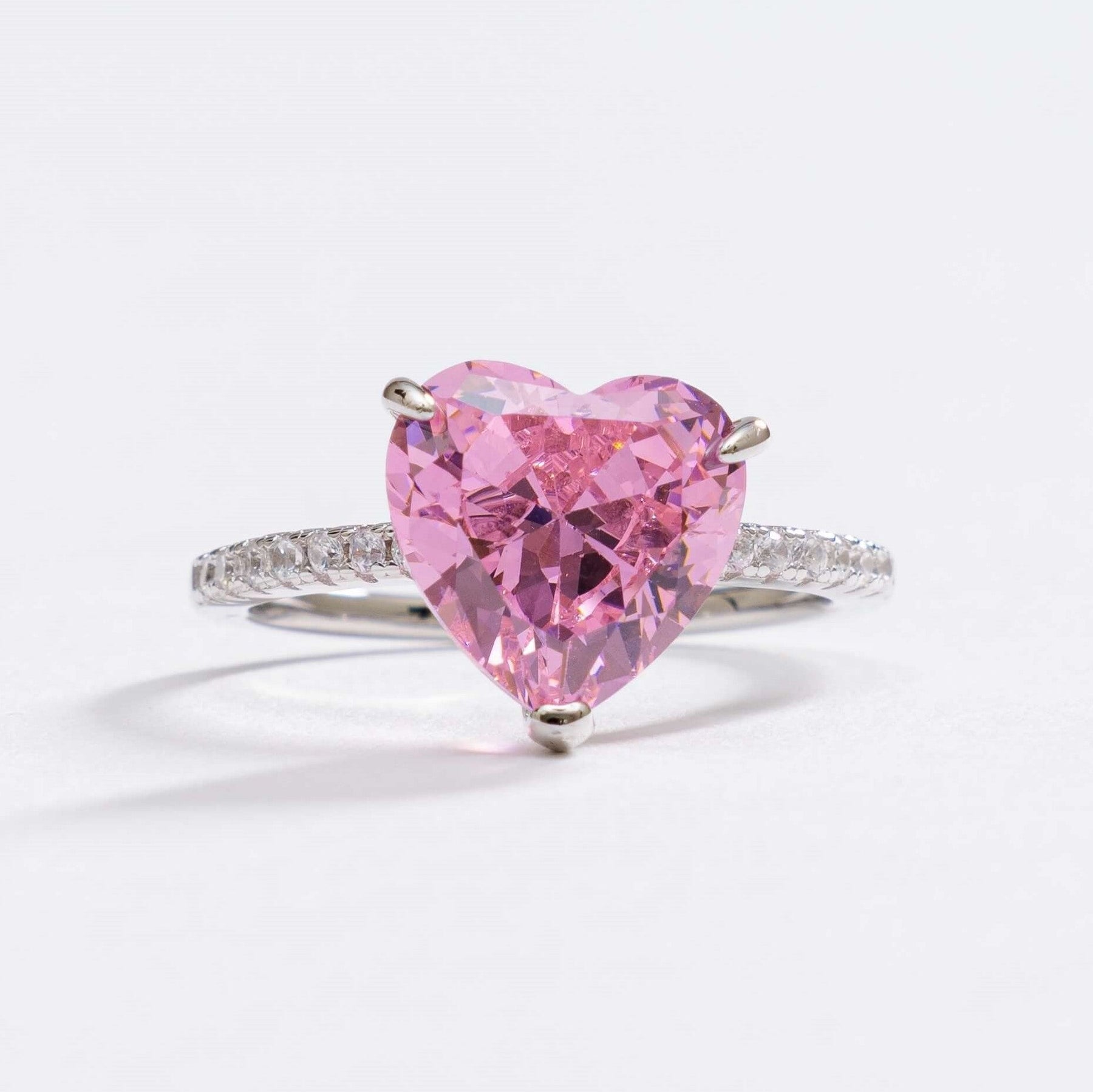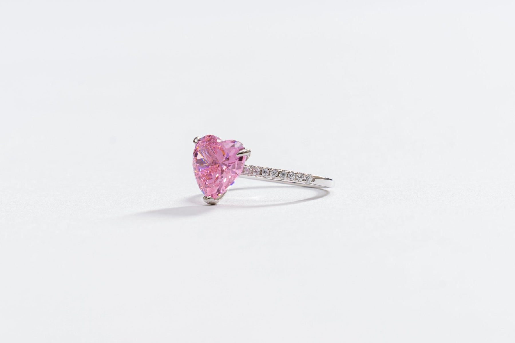 Eligible for 90 Day Quality Guarantee. Introducing our captivating Rosa Ring, designed to ignite love's flame or deepen the existing passion. Crafted with precision from 925 sterling silver and embellished with a sparkling big heart-shaped pink cubic zirconia stone, this enchanting ring possesses an irresistible charm. Its intricate details and elegant design will effortlessly make you fall in love if you aren't already, while deepening the flames of affection for those who are already smitten. Allow the Love's Embrace Ring to be a constant reminder of the power of love and the beauty it brings into our lives. It is a great gift for oneself and others.