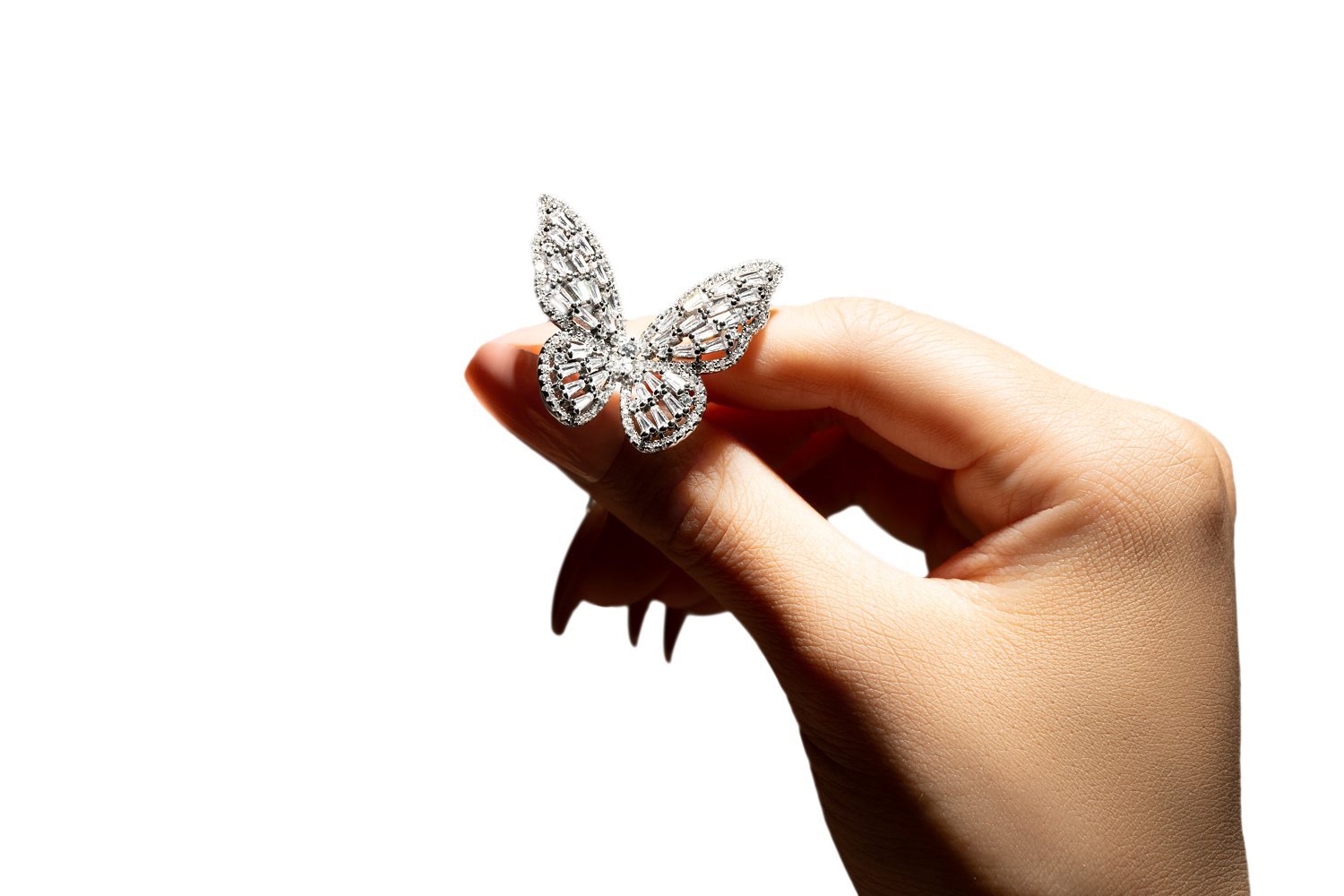 Our enchanting Irina Butterfly Ring is a bold and captivating addition to your jewelry collection, elevating your style to new heights. This large and eye-catching ring is designed to make a statement, effortlessly drawing attention and commanding admiration with its striking presence. Crafted with intricate detail and adorned with sparkling crystals, this ring radiates the beauty and elegance of butterflies.