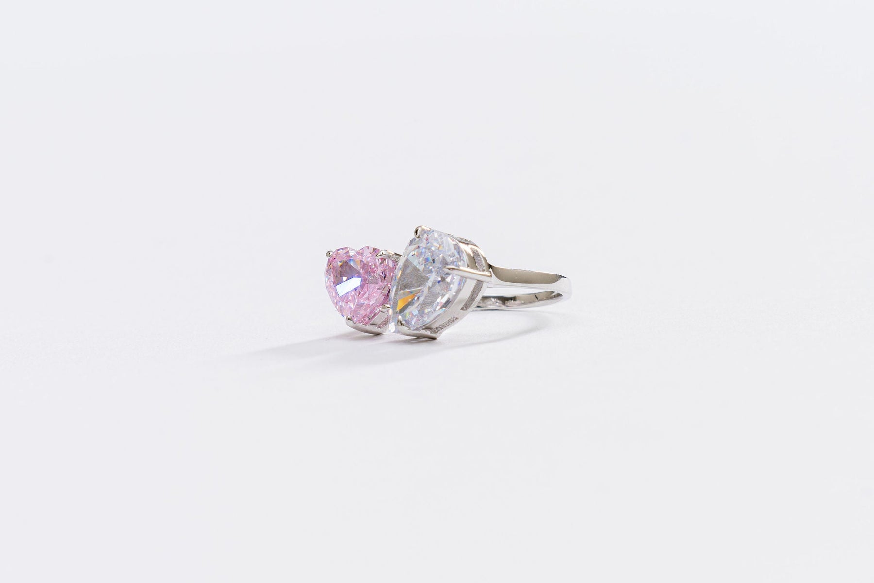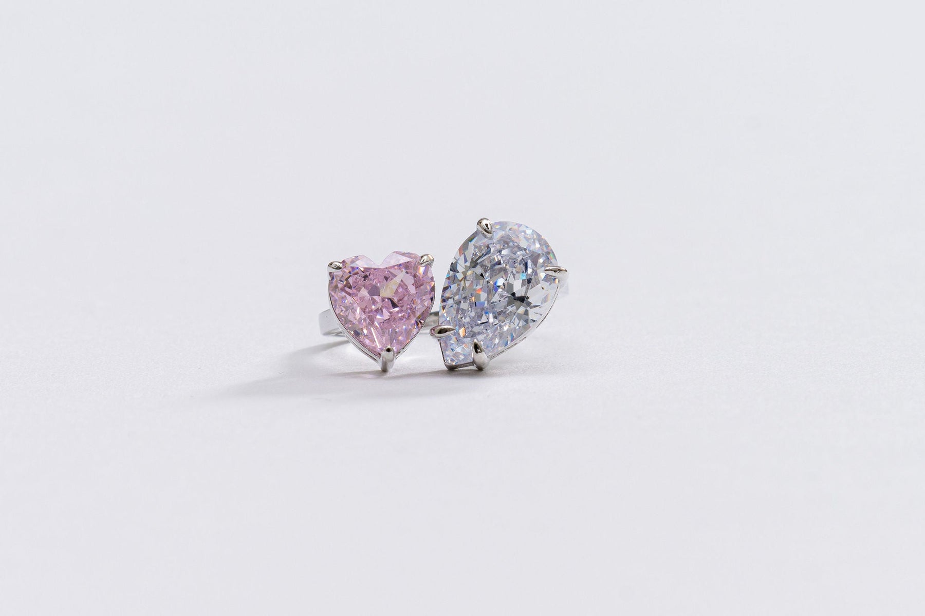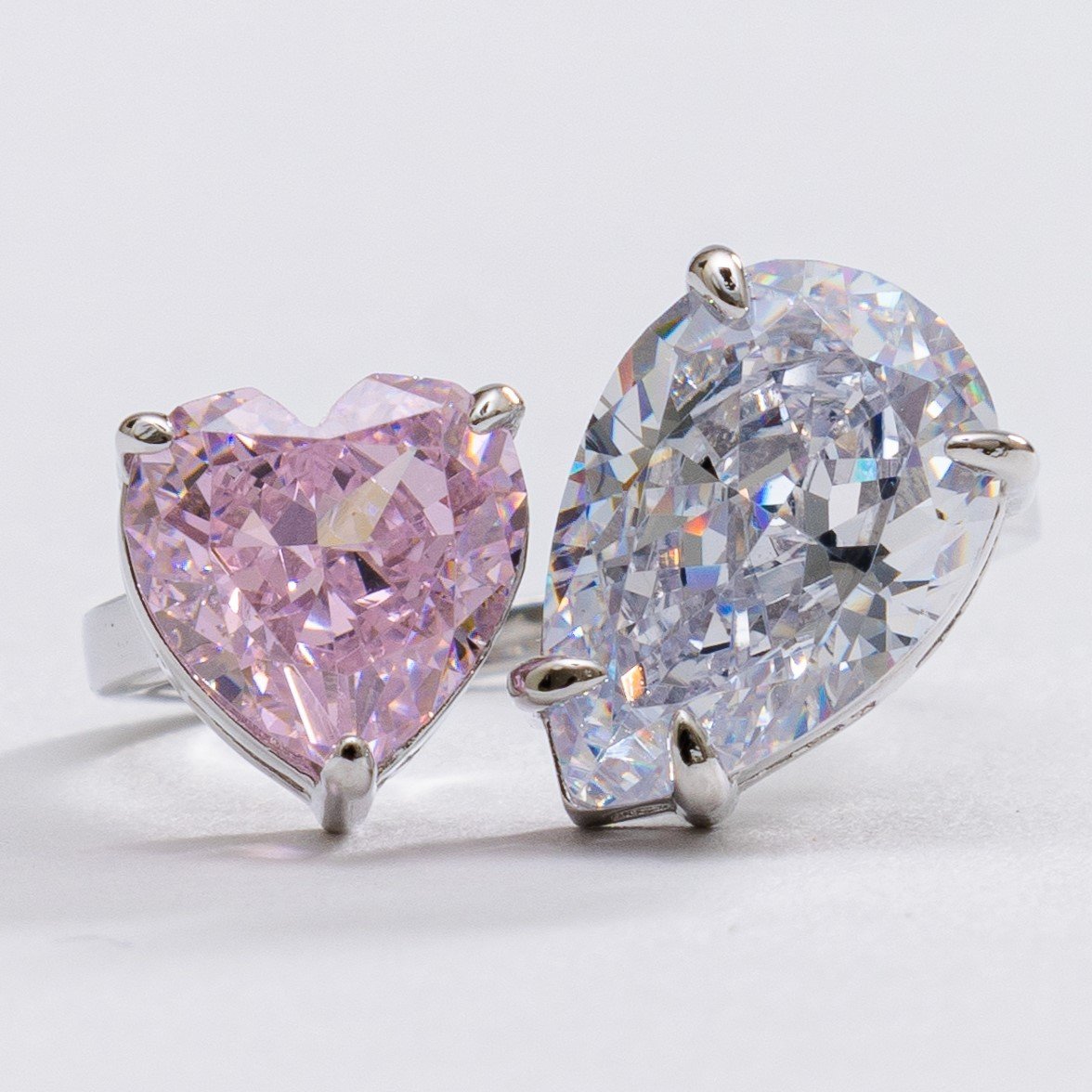 Eligible for 90 Day Quality Guarantee. Introducing our enchanting Aurora Ring, where two beautiful color stones come together in perfect harmony. This exquisite piece features a mesmerizing pink cubic zirconia stone and a shimmering silver cubic zirconia stone, symbolizing a marriage of elegance and sophistication. Crafted with meticulous attention to detail and plated with luxurious rhodium, this ring offers hypoallergenic, water-safe, anti-scratch, and anti-tarnish properties, ensuring its timeless beauty and durability. Whether worn as a symbol of love or to elevate your style, this ring is a captivating testament to the harmonious union of two stunning colors, truly double trouble.